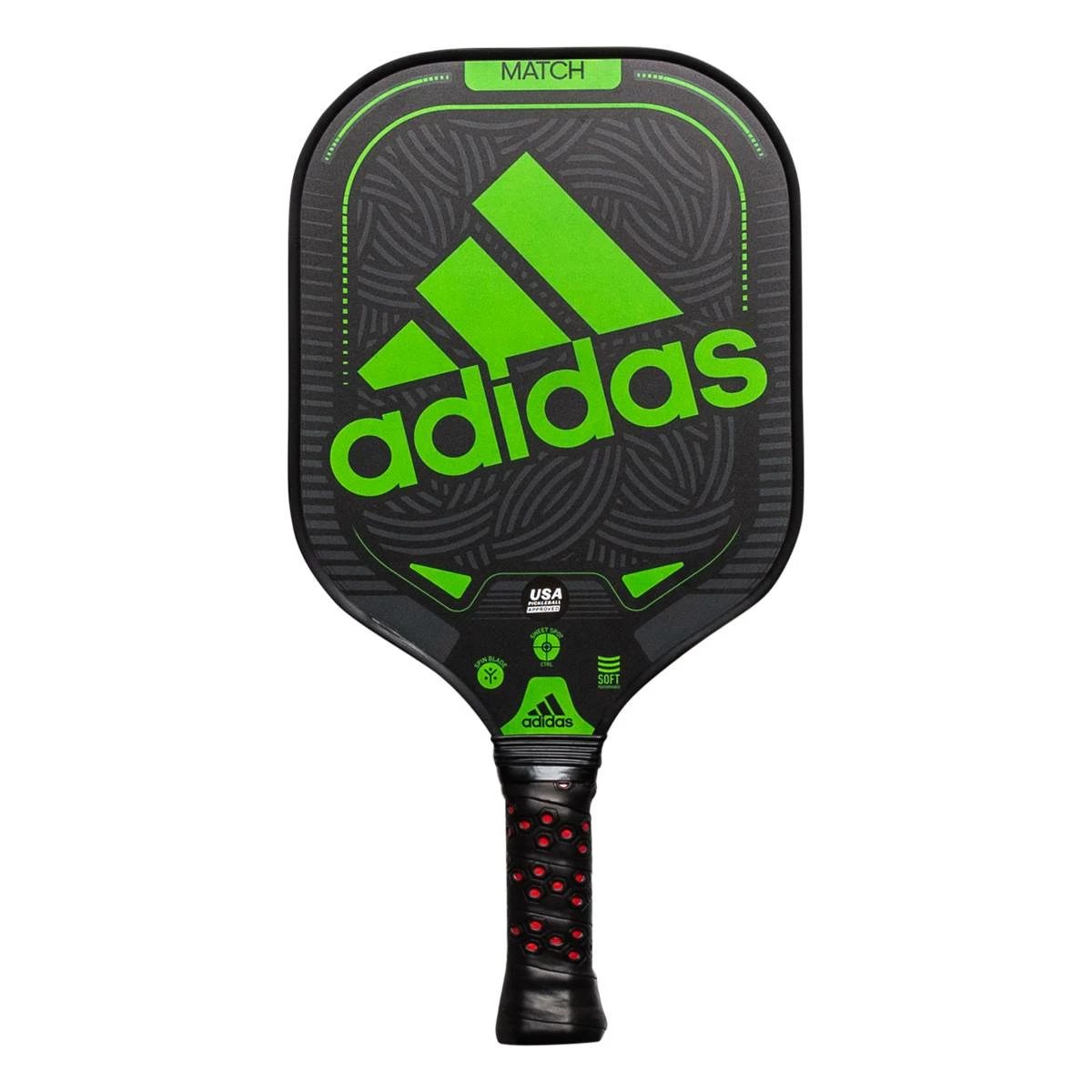 Wanting to start your first match? Grab a adidas MATCH Middleweight Composite Pickleball Paddle and head to the court and start your pickleball paddle journey! The adidas MATCH Middleweight Composite Pickleball Paddle is a great introduction to the great game of pickleball, with a familiar brand to get you started. The adidas MATCH Middleweight Composite Pickleball Paddle will have a slightly wide paddle face to give an entry-level player more room for error on mishits. The enlarged sweet spot will give a player the same comfortable feel throughout the paddle to give any player an advantage to win the match!