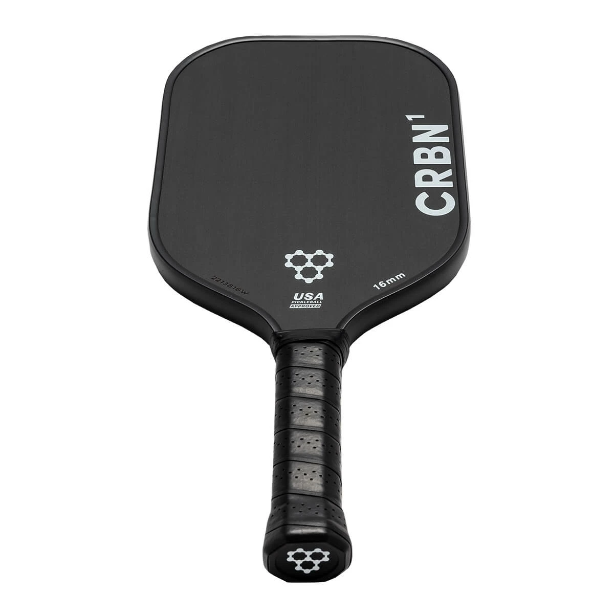 USAP Approved models of the CRBN¹ 16MM Middleweight Carbon Fiber Pickleball Paddle will feature a unique serial number near the throat of the paddle on one side, left of the USAP Approved certification.
