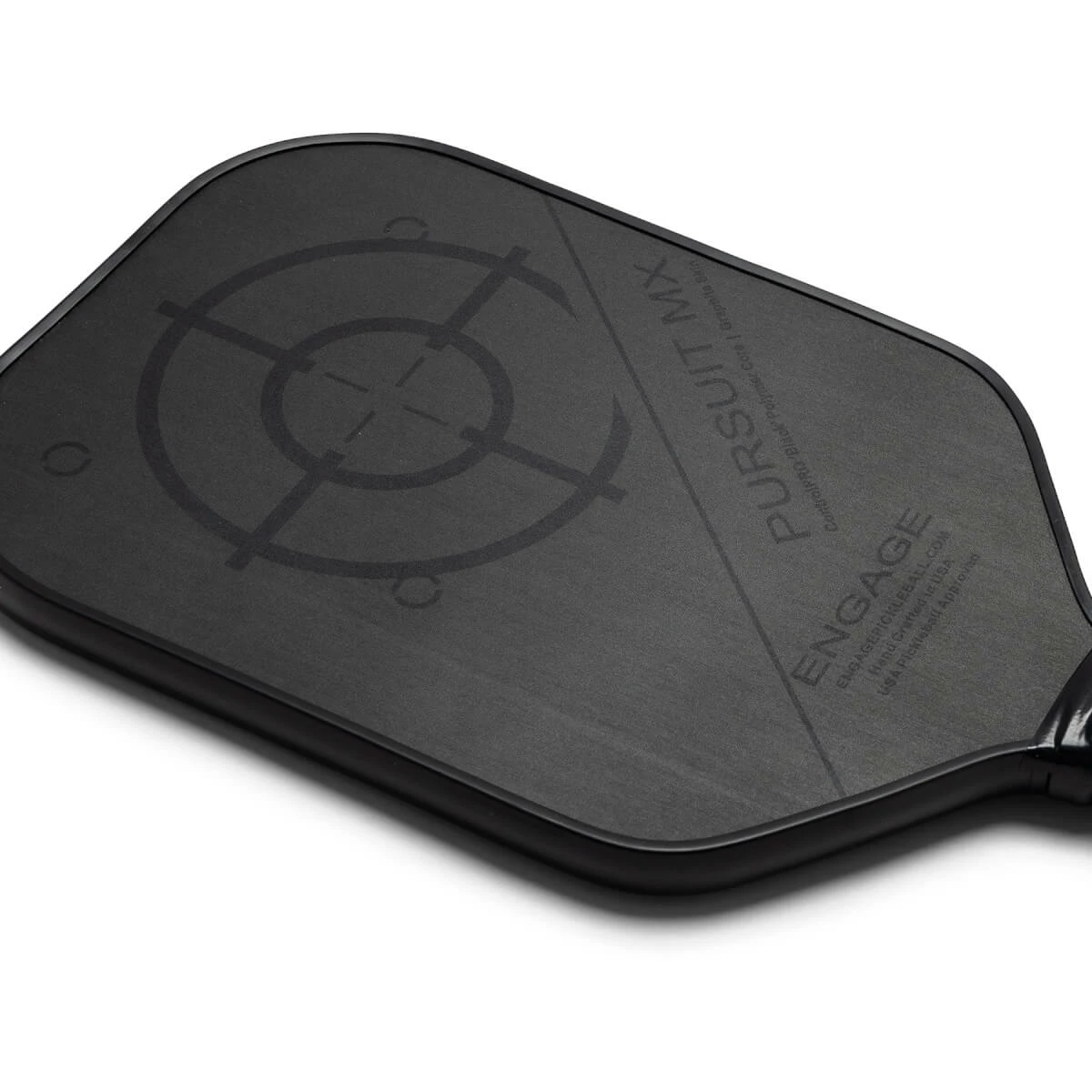 The Pursuit MX is the first graphite paddle released by Engage and is available in two different core thicknesses. The graphite face is developed specifically for the paddle to work with their black core, which is developed to be the softest core on the market. The graphite face features a rough texture that is built to last since it is a part of the paddle face/skin and not an overlaying texture. The graphite face is designed to increase friction and allow the ball to stay on the paddle longer. The combination of the black core and the graphite face give this paddle unmatched control, spin, and feel.