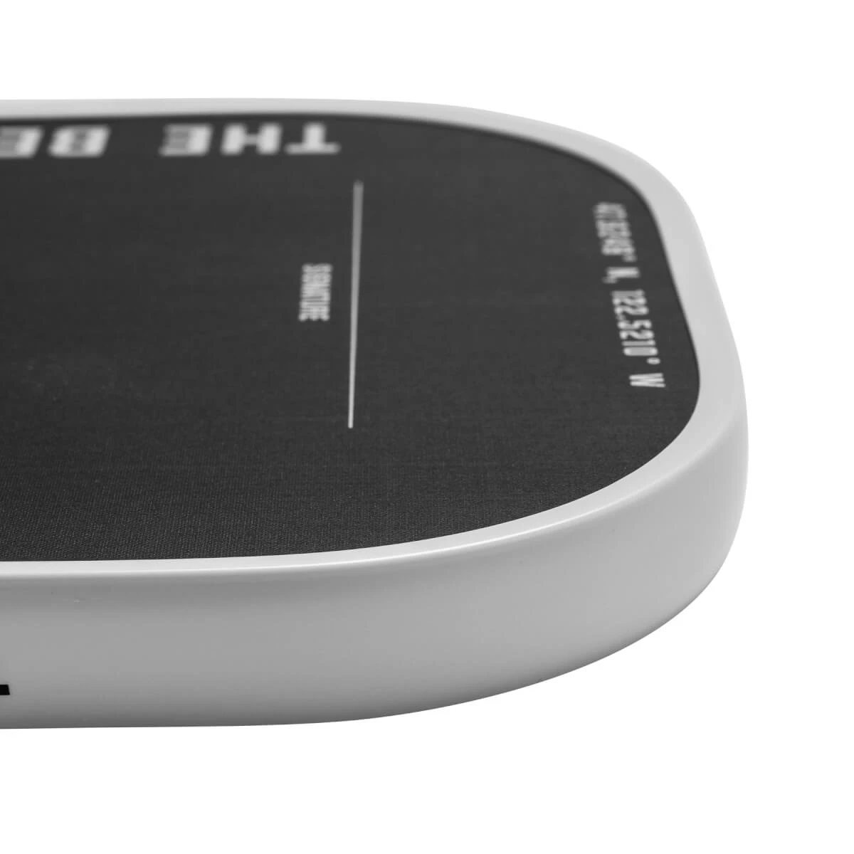 Take the court with style and performance, designed with every outfit and performance in mind. The Best Paddles by Jamie Foxx; devote yourself to your craft, pickleball. Looking at the top area of the pickleball paddle you will see geographic coordinates. These are the latitude and longitude to where pickleball was created in Bainbridge Island, Washington, USA. The signature line is an area where you can sign your own paddle. Why do they do this? Three reasons. The first reason found, by signing your name on your “best paddle”, you are committing to playing your best! The second reason is we liked the look after you sign it. A paint pen or a sharpie is recommended!